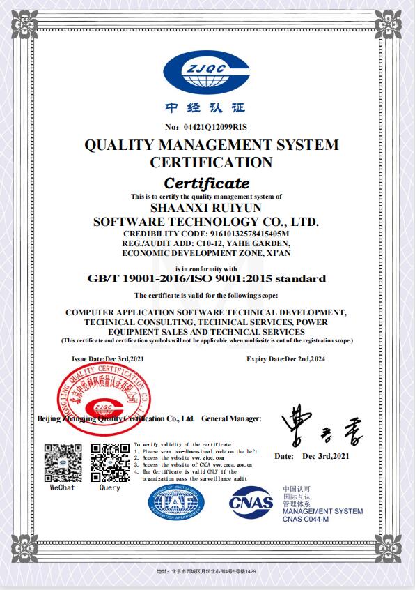 頒發機(jī)構:北(běi)京中經科(kē)環質量認證有(yǒu)限公司