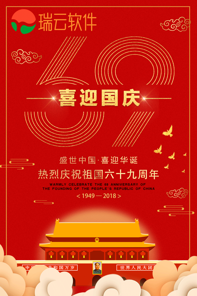 在國(guó)慶69周年(nián)到來之際,瑞雲軟件祝我們偉大的(de)祖國(guó)繁榮昌盛,人民幸福安康!