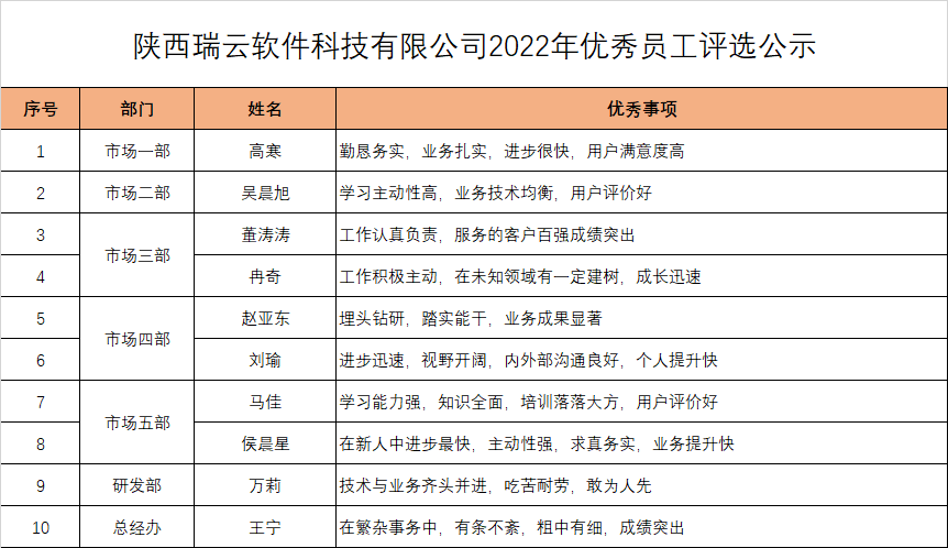 2022年(nián)度瑞雲軟件優秀員工評選公示
