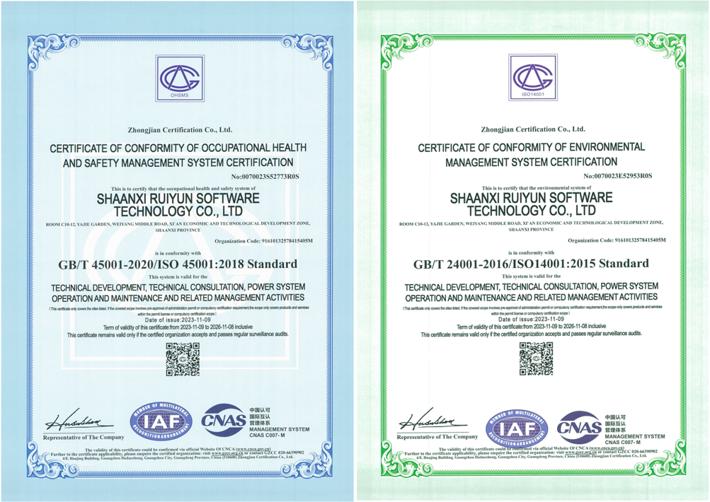 瑞雲軟件日前通過了ISO45001職業健康安全管理(lǐ)體系和(hé)ISO14001環境管理(lǐ)體系認證,期望實現人員安全、質量保證、環境保護、客戶滿意和(hé)企業受益的(de)和(hé)諧體系。